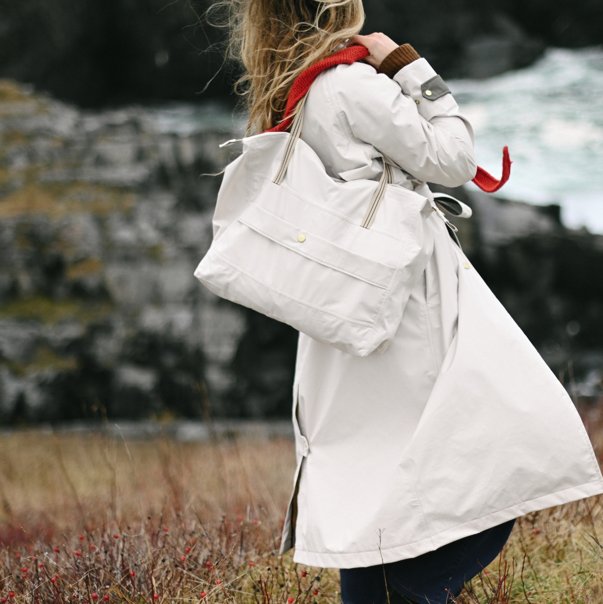 Each piece is hand-cut from our recycled, waterproof fabric and sewn in our studio in Nova Scotia.