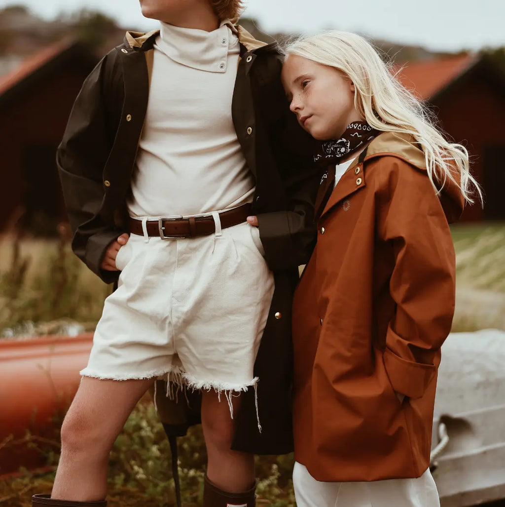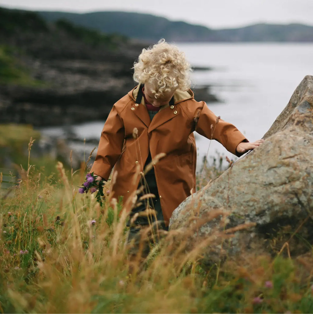 This is one of our most popular designs, because it’s simple and functional. With an above-the-knee hemline for wind protection and raglan sleeves, the Midi Rain Coat offers timeless comfort. The deep side pockets are perfect for tucking hands and when paired with warm underlayers, this raincoat can be worn year-round.