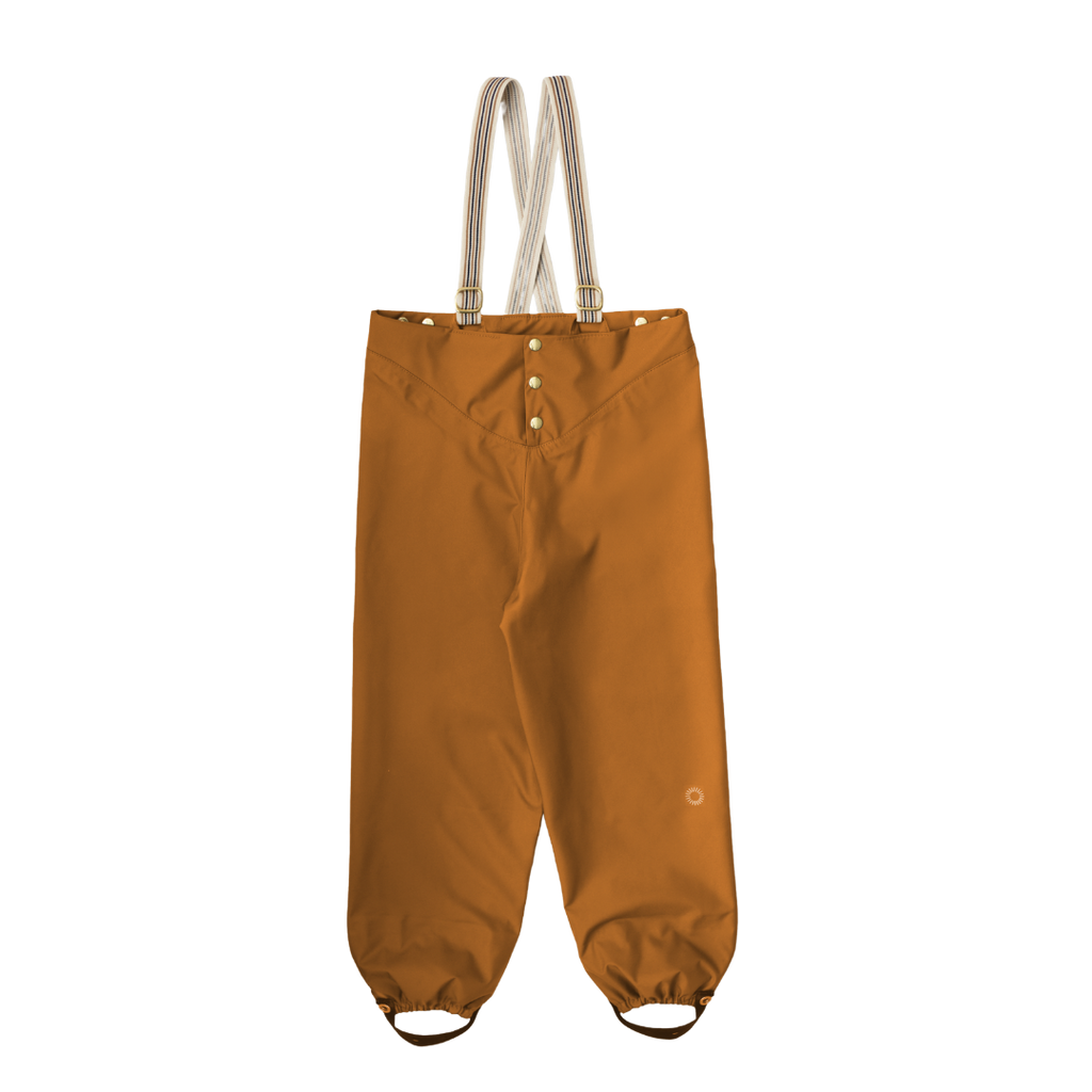 Made for children with a penchant for puddle jumping, the Rain Pants are inspired by French under trousers. The brass snaps open at the waistline to support independent dressing and there are several adjustable features: the suspenders, waistband and stirrups. This waterproof design fits at least three sizes and accommodates warm underlayers, so your child has the freedom to explore while staying cozy and dry.