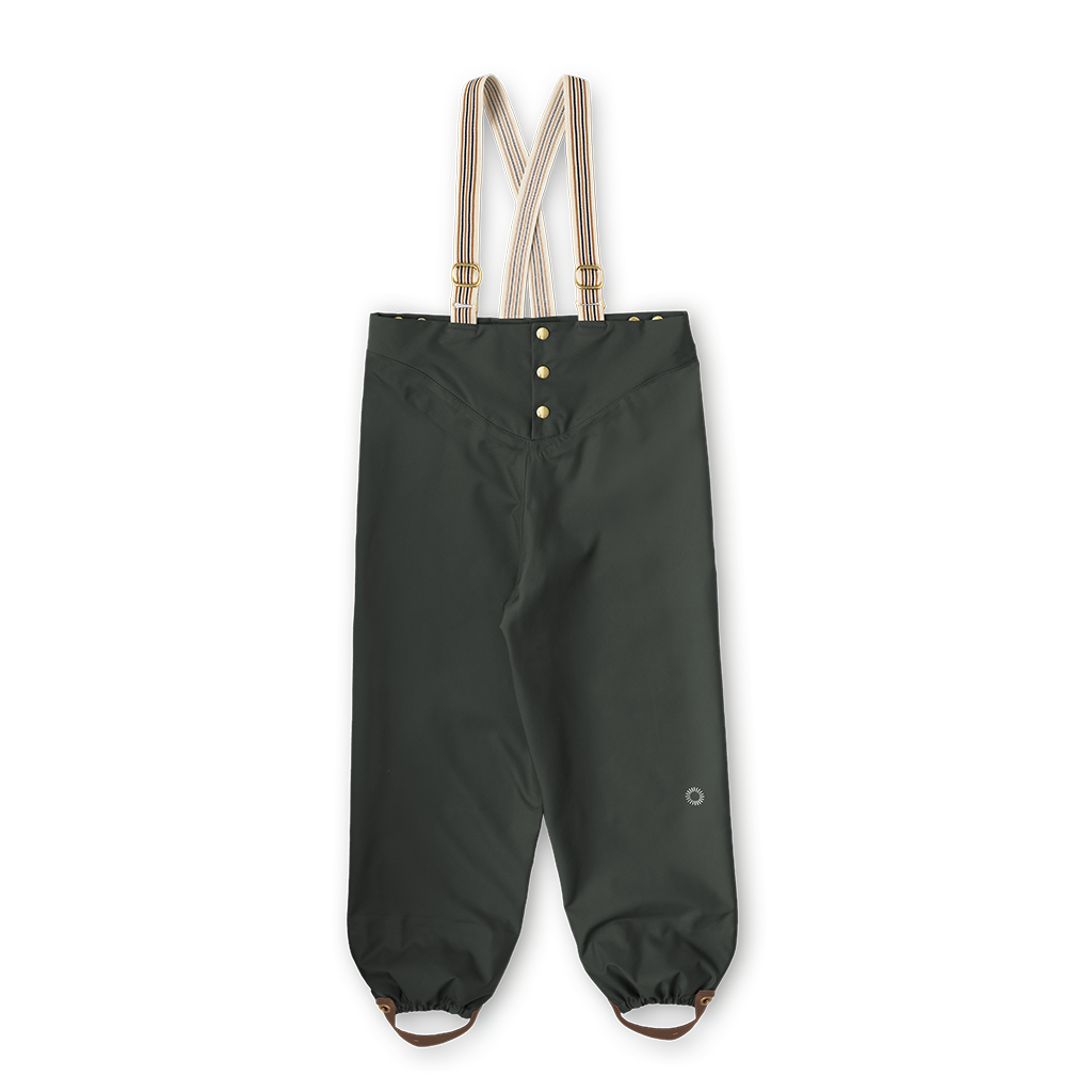 Made for children with a penchant for puddle jumping, the Rain Pants are inspired by French under trousers. The brass snaps open at the waistline to support independent dressing and there are several adjustable features: the suspenders, waistband and stirrups. This waterproof design fits at least three sizes and accommodates warm underlayers, so your child has the freedom to explore while staying cozy and dry.