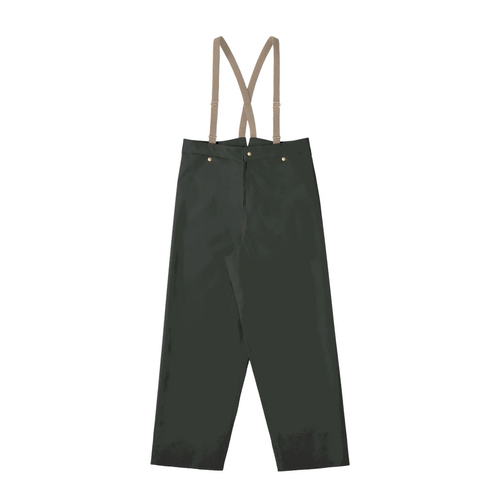 This is a Made To Order item, please allow 4-5 weeks for our team to make it for you. Modelled after classic vintage Sailor Pants. These feature a wide leg with no side seam for ultimate comfort. High waisted with an adjustable strap on the back and adjustable suspenders. Designed as an overpant with room in the waist for tucking in the coziest sweaters. These pants feature two hidden front pockets with snap closure and an invisible waterproof front zipper.